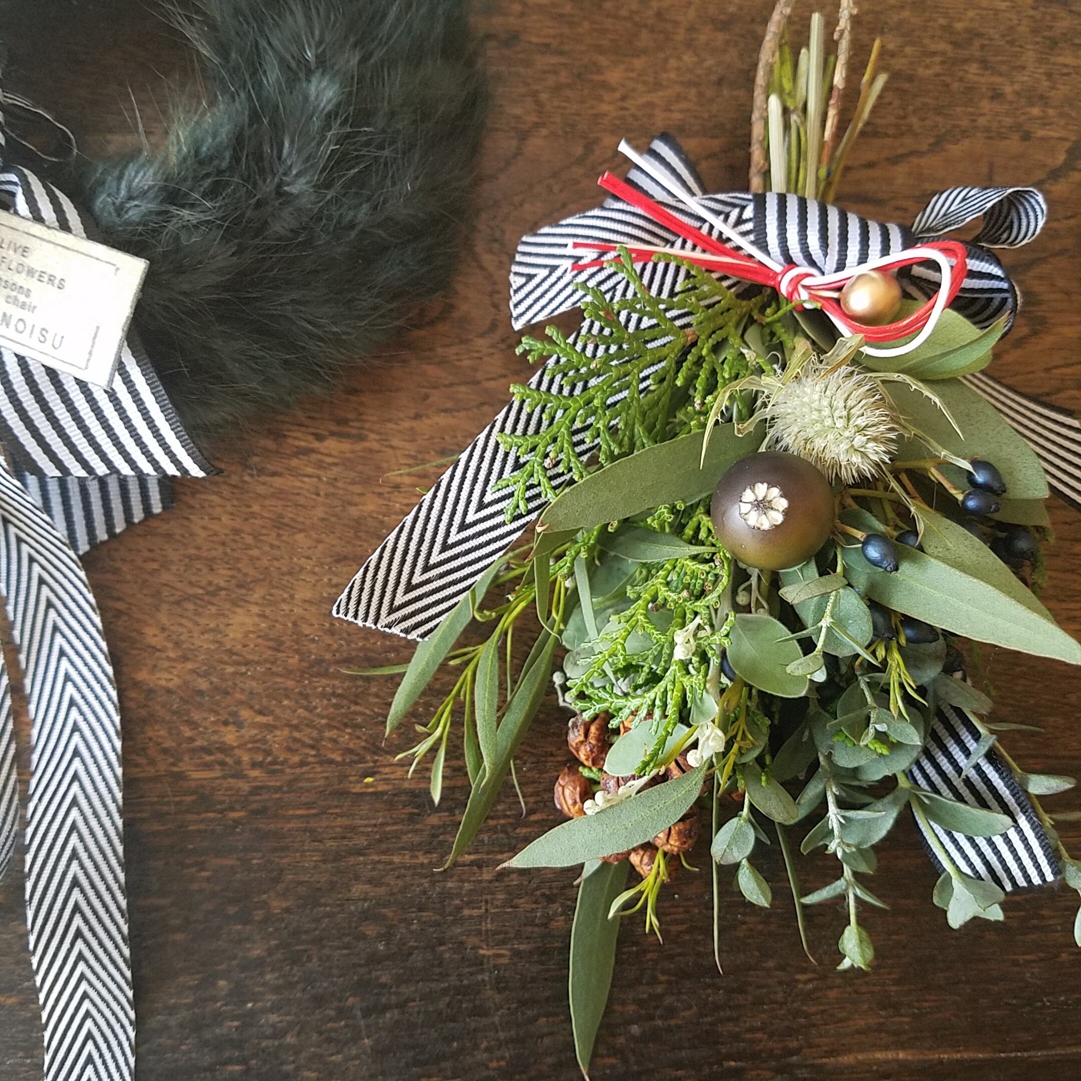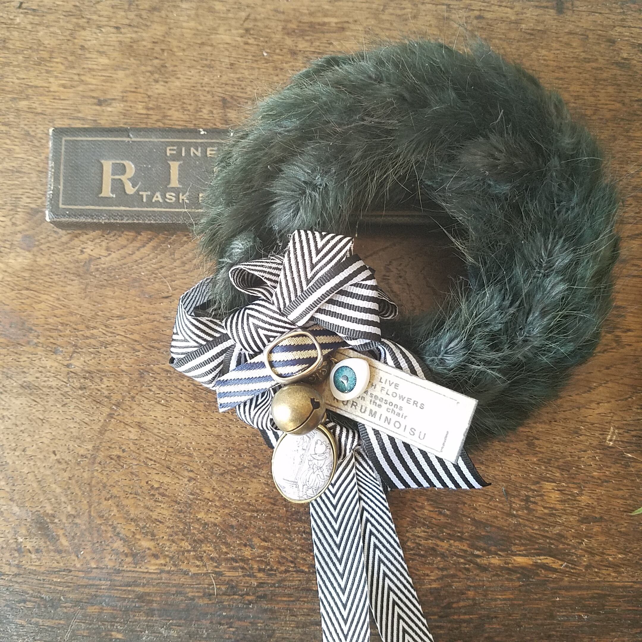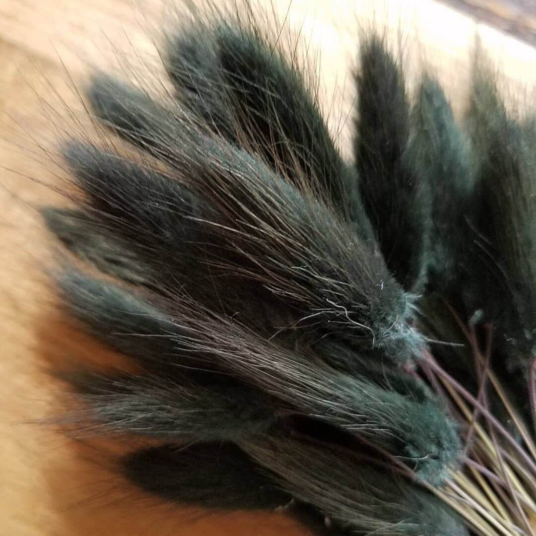 ラグラスというふわふわのネコジャラシみたいな植物を黒く染めて黒猫風。
