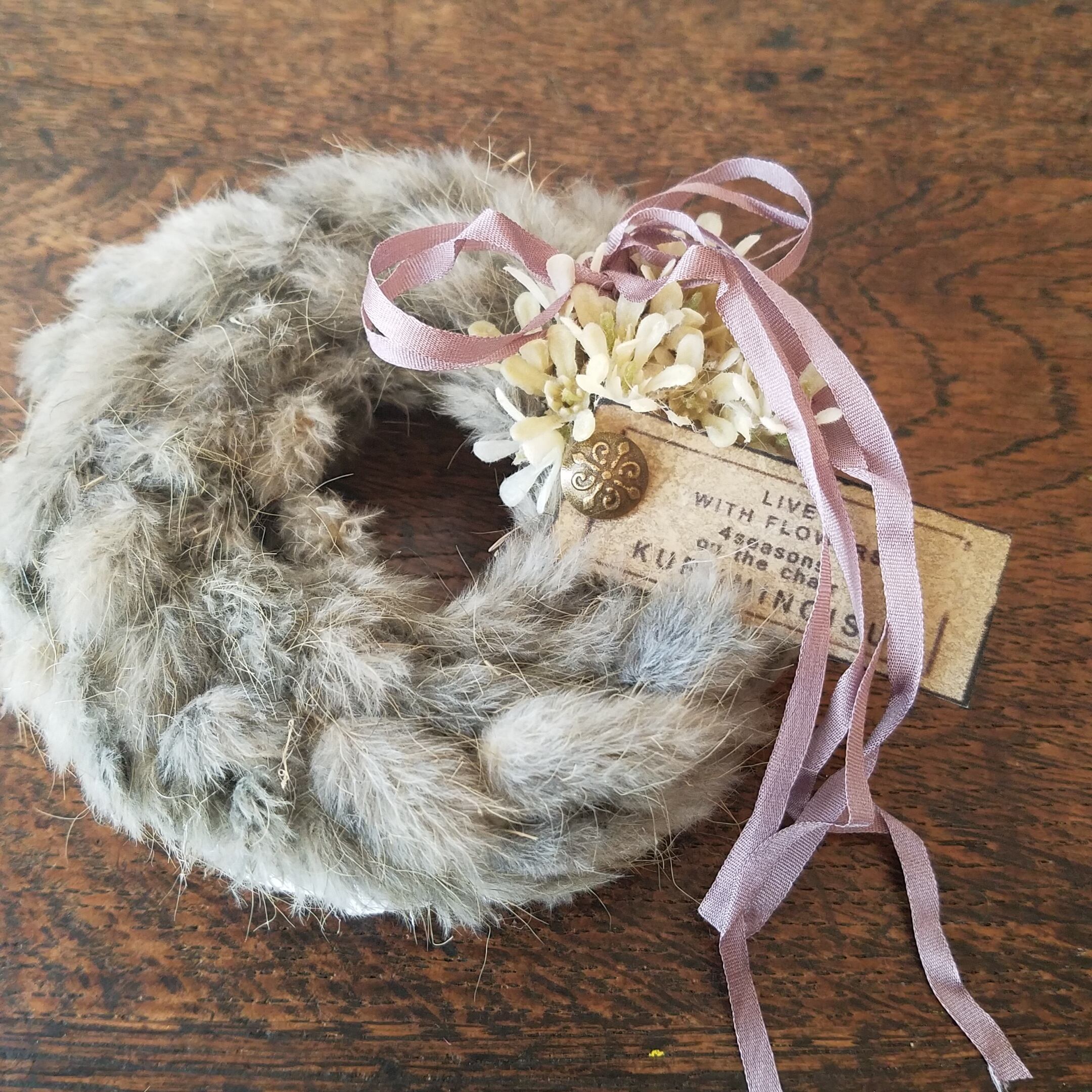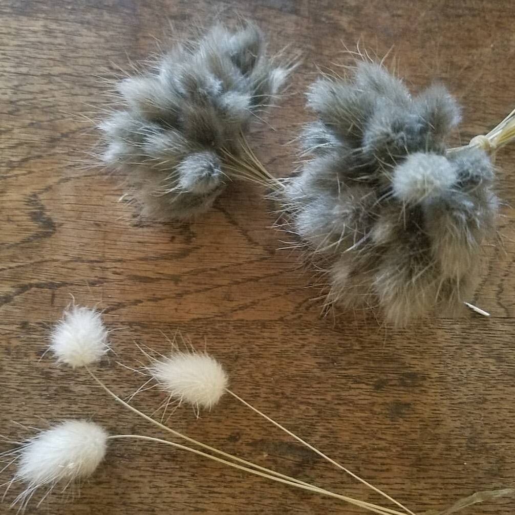 ラグラスというふわふわのネコジャラシみたいな植物を染めました。黒猫にするつもりで染めたけど、染料が絵の具だったのでロシアンブルーになっちゃった。